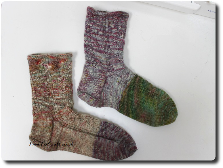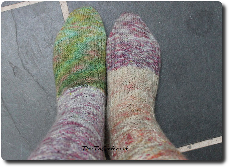 Thanks to all your kind comments last week, I kept my focus and went for it. As these are destined to be walking socks, the colour mismatch is irrelevant, with a capital “I”. There was no need to waste all those hours of knitting in the pursuit of perfection. Draw a line and move on.