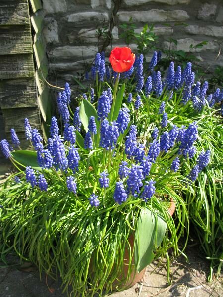 We have only one tulip in our garden. We always have just one tulip in the garden and it is the same one. My Grandmother planted it up in a pot along with grape hyacinths. Every year the tulip rises up like a phoenix and bursts out in a beautiful fiery red. It stuns and pleases every time. A multitude of memories flood through my mind. Every year.