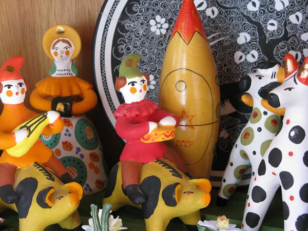 On a totally different and more colourful note. I have been fascinated by these Russian clay toys, ever since I saw them here. I was born just after my parents returned from two years in Moscow, so although I’ve never been there, I grew up surrounded by Russian culture. Every year these Russian toys would come out at Easter and I took them as part of the general colour of the season.