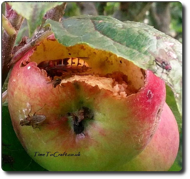 In the meantime, I am making grab and run raids. I’m becoming an expert. I understand their behaviour. I can predict. I figure if I can reduce the fruit, then the hornets will move on. Plus I can use my apples. I don’t mind sharing, but so far, the hornets don’t seem so keen to play fair.