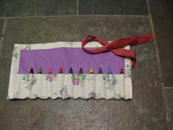 I am able to make a crayon roll in less time than it would have taken me to shop. I select a small notebook from my collection to go with it. I enjoy doing it and I also have time to think nice thoughts about the person I am making it for. I’ve had really positive feedback from parents.
