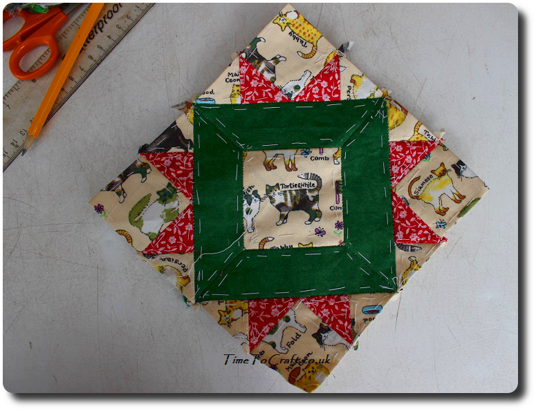 This block is called Noon and Light. In retrospect, I think the dark green was not the best choice. Too dark and defining. The name suggests a lighter combination. Not that the name matters. Once the block is among the others, it will look right.