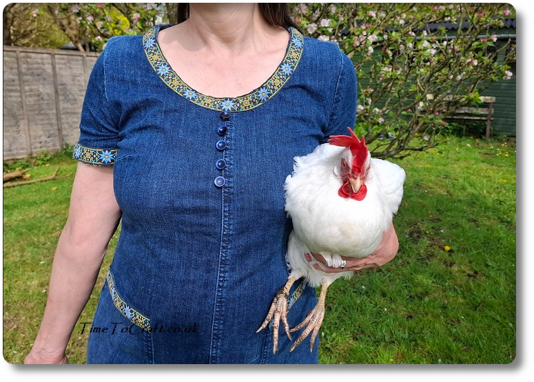 My thanks go to Eldest daughter for taking the photos, Middle daughter for being my sounding board as I thrashed out the design changes to the dress and Dolce the hen for modelling.