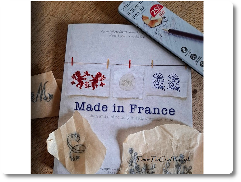 Next I traced letters and a garland of flowers from my Made in France book using the trace and transfer technique. I love this book. There are so many projects that I’m keen to tackle. I don’t embroider often, but when I do, I remember how much I enjoy it and would enjoy an excuse to spend more time perfecting my skill.