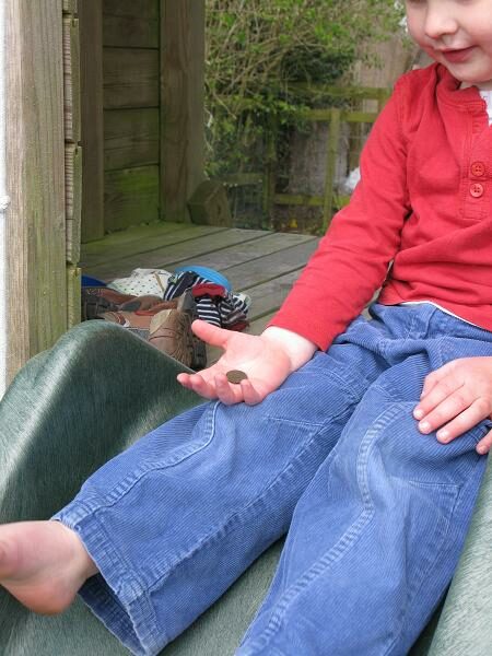 I wish I had been there when he uncovered his coin. He did come rushing in to show me his 5 pence piece. It is dated 1990, which predates our move to the house. I think it has been underground for a while as it is looking quite tarnished, when it should be silver.
