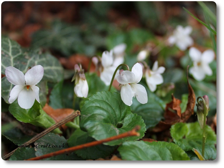 The flowers are appearing. I was thrilled to see the snake head fritillary budding up in the garden. There are three buds so far. We have a carpet of primroses and patches of white violets too.