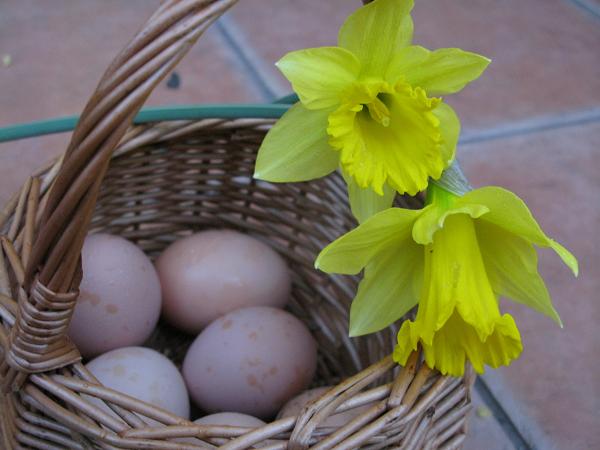 You have spring! Eggs and Daffodils ..they look lovely 😀 (the sprouts look yummy too)