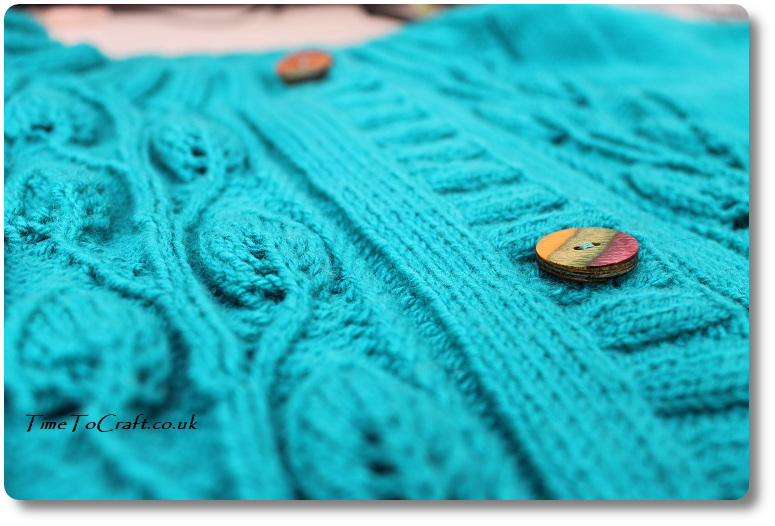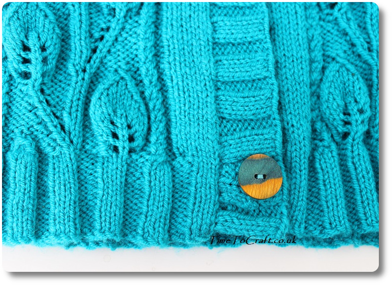 The buttons are 23mm Knit Pro wooden buttons. My sister gifted me the first one, a few years ago. Fortunately, I found two more. I love how they look against the teal wool. I used Hayfield double knit with wool, which is the same type as I used for the two hoodie’s last summer. I’m not sure it shows how vibrant this colour is in the photos.