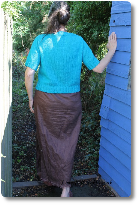 I made it in the fifth size. I wish I’d gone down to the fourth as it’s a bit too big. All that running and giving up crisps since I started knitting it, has made a difference. Optimistically, I washed it straight away, but it still feels a little looser than I’d like. I’ve also found I prefer to wear it with more figure hugging, plain dresses, as it’s more flattering if it’s not competing with anything else.