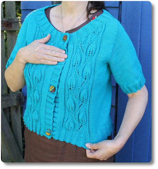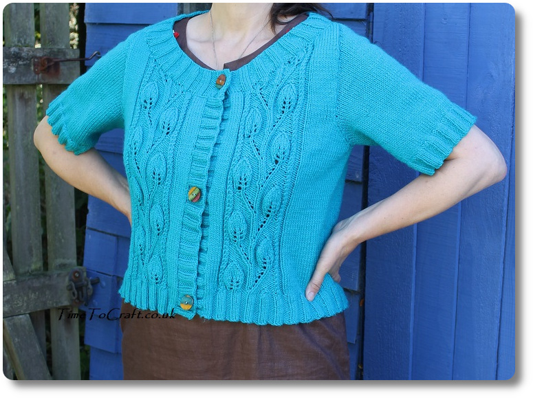 Talking of which, if you do follow me over on Instagram, you’ll have seen that our summer has been filled with sun and crafting. I have so many projects to share here. Starting, as it’s as good a place as any, with my latest finished knit. I finished my leafy cardigan, on one of the hottest days of the summer. It’s remained too hot to wear, except in the evenings. Sirdar 9428, which is not a catchy title, so I’ll stick with leafy cardigan.