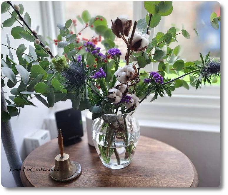 Due to my husbands allergy, I can’t have flowers in the house. He once discovered my hyacinths in a little used cupboard, where I was secretly forcing the bulbs, and had left them a bit long. He is that sensitive. So, no flowers are allowed. This week, I discovered a compromise. Each Saturday, I see the Wells Saturday market setting up. In the last few weeks, the flower stall has transitioned from flowers to non-flowers for the festive season and I’ve been yearning to buy one. It occurred to me that there is no pollen involved, therefore no sneeze risk.