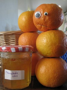 Popped along to check out your marmalade recipe – it looks very good and I laughed out loud at the oranges enhanced with wobbly eyes! Glad to hear they didn’t go in the marmalade! Hope you weren’t hard-hearted enough to remove the eyes and cut the oranges up after you made them into such characters!