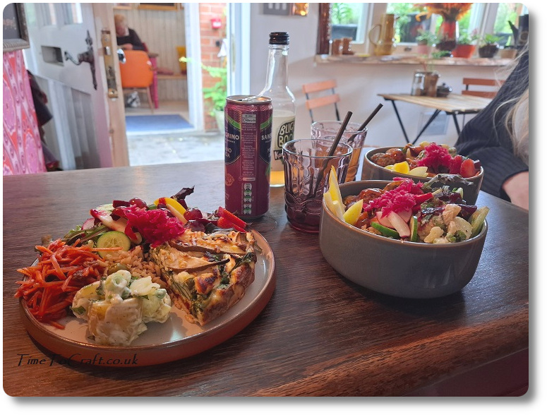 I’d read about a small café in the Gauntlet*. The Gauntlet is a narrow alley way of shops which I’d not found before. We walked passed psychic, tarot and aura reading shops among the handmade clothes, music and essential oil stores. Right at the end, we found the café and had lunch. The food was fabulous and well worth finding it.