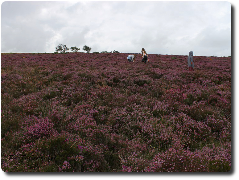 The weather may not have been the best, but it was fabulous to be out on the moors. This time of year, it is a sea of heather as far as the eye can see. The heather is in full bloom. The scent was amazing and the bees were loving it. Merrily humming. It was so beautiful. I took photos of the children, surrounded, which would rival similar ones I’ve taken of them in lavender fields.