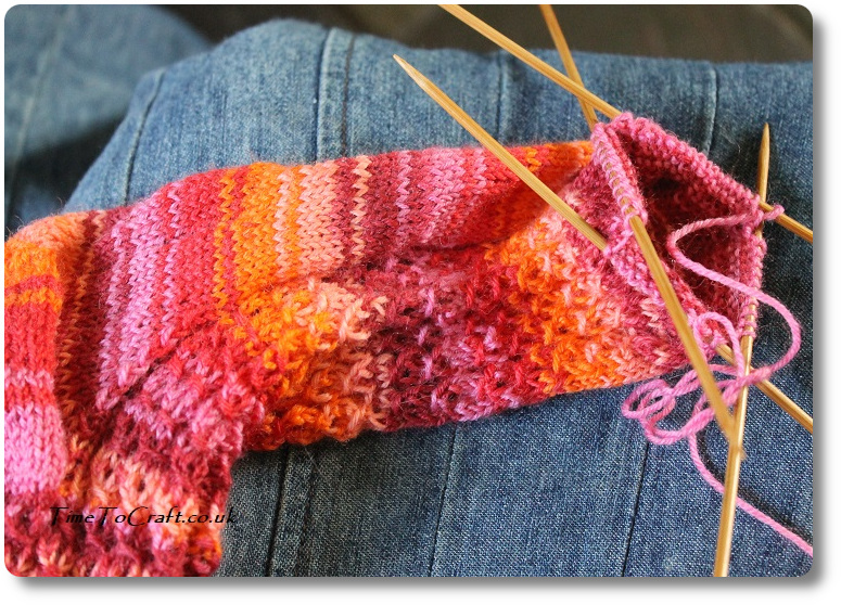 I’m also knitting orange socks. These have gone on the back burner, as I’m not sure I like them. I love the colours, but I wish I’d knitted them in a less fussy stitch. They are fun to knit and I’ve nearly finished the first sock, but it has knocked the wind out of my enthusiasm to pick them up.