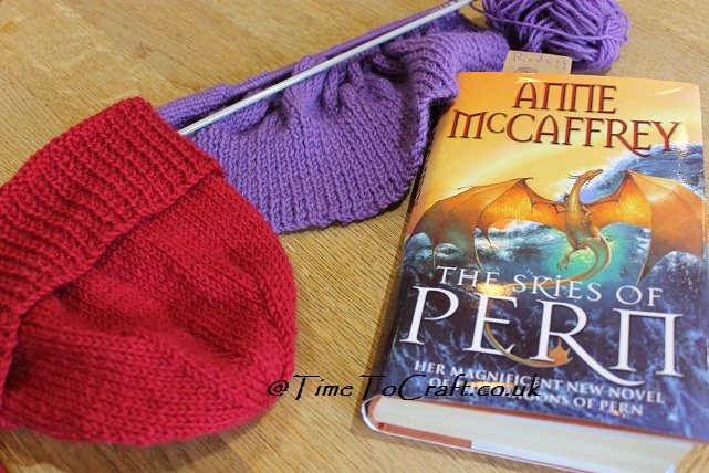 It is the perfect knitting project to do while reading. The yarn is double-knit (worsted) and the pattern straight forward. I’m working my way through the Anne McCaffrey Pern series. This is a re-read, but it’s been so long that I have forgotten them. Real escapism. (Just realised I was reading this series last time I joined in the Yarn Along. There are a whole stack of books in the Pern series, which I’ve read in the meantime!)